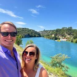 We then proceeded to drive through the Verdon Gorge which is very scenic. There were lots of campervans around so we didn't feel so small here! We made a stop by the very blue water! We wanted to jump in (it was 30 degrees during the day) but continued back to Marseille
