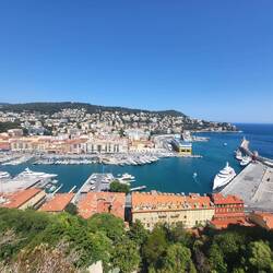 During the afternoon, we went to get ice cream at our favourite place which we went to yesterday (Fenocchio). Daniel had mango and pistachio and Gab had banana and milk caramel this time. We then walked up to the park with lookout points to see over all of Nice (Parc du Château Escalier). We took in some incredible views before making our way down to the token ‘I Love Nice’ sign. It was sooo hot (around 35 degrees) so opted for some happy hour drinks of a pint of beer and an aperol on our way back to the Airbnb.