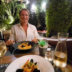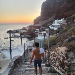 We made it to our restaurant where we had a lovely view over the bay, and enjoyed seafood linguini and seafood risotto which was really delicious! :) We then climbed back up the stairs and took our time, knowing that aircon was awaiting us at our hotel! We had one last stroll along the Oia footpath and made it back to the hotel.Read more