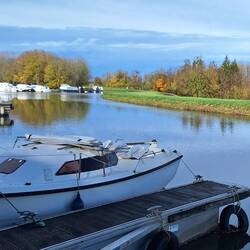 Daher fahren wir zu einem schönen Wohnmobil-Stellplatz an einem Schifffahrtkanal, wo man sich einen Stromanschluss hat.