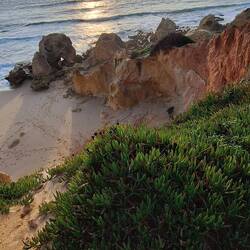 Am frühen Morgen, vor dem Frühstück, machen wir eine Wanderung durch die Klippen, denn wir haben gestern Gonzos Leine verloren, da er zumeist frei herumläuft.