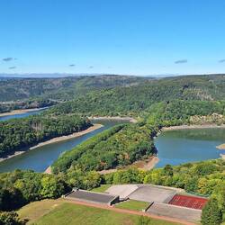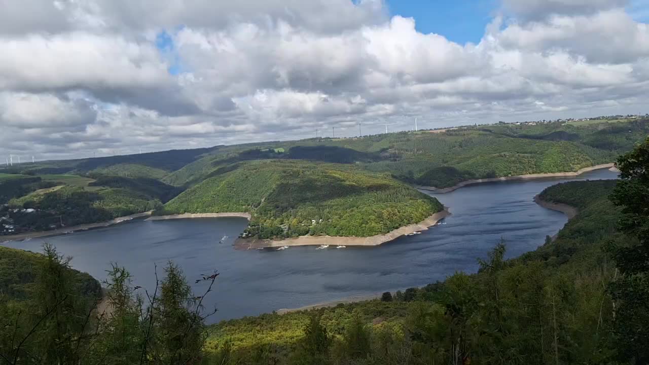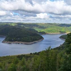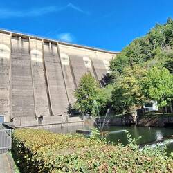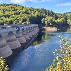 Zuerst geht's zur Oleftalsperre. Ein kleiner Wanderweg bringt uns auf die Talsperre, von der man einen schönen Blick auf den See und auf der anderenLue lisää