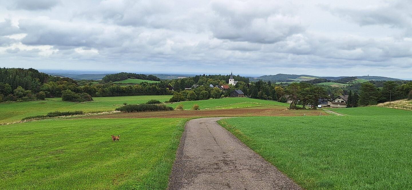 Es gibt einen ausgewiesen Wanderweg den wir auch frohen Mutes gehen. Über Stock und Stein und weite Felder mitLue lisää