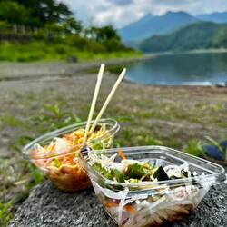 Wir spazieren durch den Wald zuerst zu einer Aussichtsplattform und fahren dann mit den Rädern um Lake Kawaguchi und um Lake Seiko. Schöne, tiefblau-türkise Seen, in denen sich die Berge ringsumLæs mere