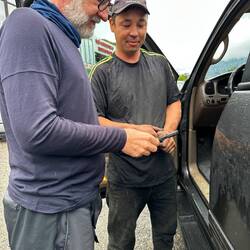 Morgens leuchtet eine Anzeige im Auto, die wir nicht kennen, wir halten an einerRead more