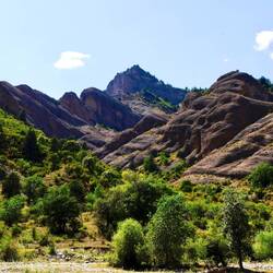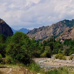 Klarer blauer Himmel am nächsten Morgen, nach dem Frühstück geht’s zum Sary-Chelek Naturpark. Hinter der Schranke beginnt ein Schotterweg nach oben (die offizielle Straße auch zum Hotel) mitLeggi altro