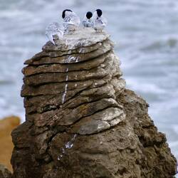 Sie entstanden vor etwa 30 Millionen Jahren. Damals lagerten sich feine Schichten von Meerestieren und Pflanzen, vermischt mit Sand, auf dem Meeresboden ab. Unter hohem Druck bildeten sich daraus abwechselnd harte Kalk- und weichere Tonschichten. Später wurde dieses Gestein durch seismische Aktivitäten an die Oberfläche gehoben. Wind, Regen und das Meerwasser erodieren die weicheren Schichten stärker, sodass die härteren Kalksteinschichten als gestapelte „Pfannkuchen“ sichtbar bleiben.