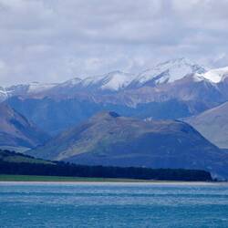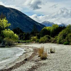 Mittagspause am Lake Wanaka, riesig, blau von Bergen umgeben, genauso wie der Lake Hawea, der mit zunehmend besser werdendem Wetter türkis scheint. Auch hier Berglandschaft mit weißen Gipfeln. Toll.