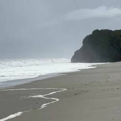 Hier kann man durch die Dünen laufen und durch den Sumpfwald. Der Strand ist wild, hohe Wellen, schööön und der Sumpfwald ist eigentlich wie der Regenwald, aber mit viel Wasser auf den Boden. wir laufen über Holzstege eine kleine hübsche Runde.