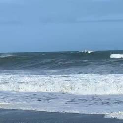 Wir fahren weiter Richtung Süden auf dem SH 6, es nieselt, der Fox Gletscher steckt in einer grauen Wolke… wir halten gar nicht erst an ☁️. Bei Ship Creek halten wir am Strand ( sogar mit etwas blauem Himmel).