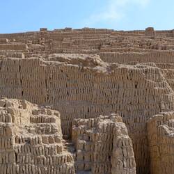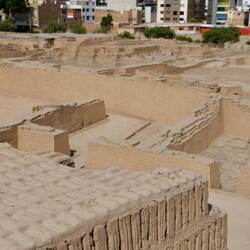 Der Komplex umfasst neben der großen Pyramide eine Plaza und verschiedene kleine Lehmstrukturen, die als Verwaltungs- und Zeremonialräume dienten. Archäologische Funde wie Mumien, Keramiken und Textilien sind in einem Museum vor Ort ausgestellt.