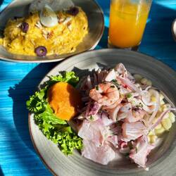 Letzteres Essen wir nicht, für Jürgen gibt’s leckeres peruanisches Hühnchen und ich nehm nochmal Ceviche. Sooo lecker!