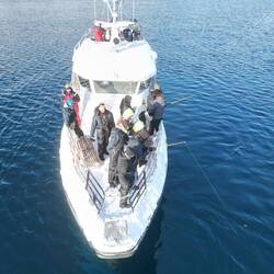 Il tour in peschereccio termina e una volta a terra ci facciamo tutti una foto con il capitano. Salutiamo e ringraziamo l'equipaggio.