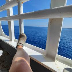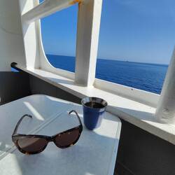 🇬🇷 Wir kommen, Camping on Board immer wieder ein Erlebnis 😊. Das erste Mal seit das wir Fähre fahren, bekommen wir einen Platz direkt an der Reling. Ich freue mich grad riesig 😊