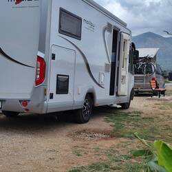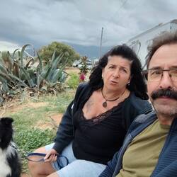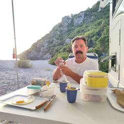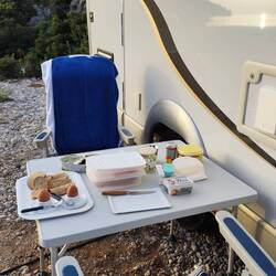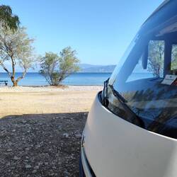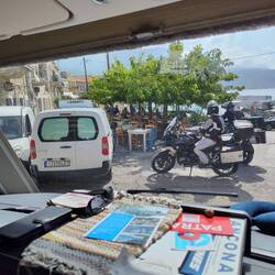 Camping Semeli, kurzer Aufenthalt um alles wieder aufzufüllen, noch ein Kaffeetratsch mit Gusi und Wolfgang