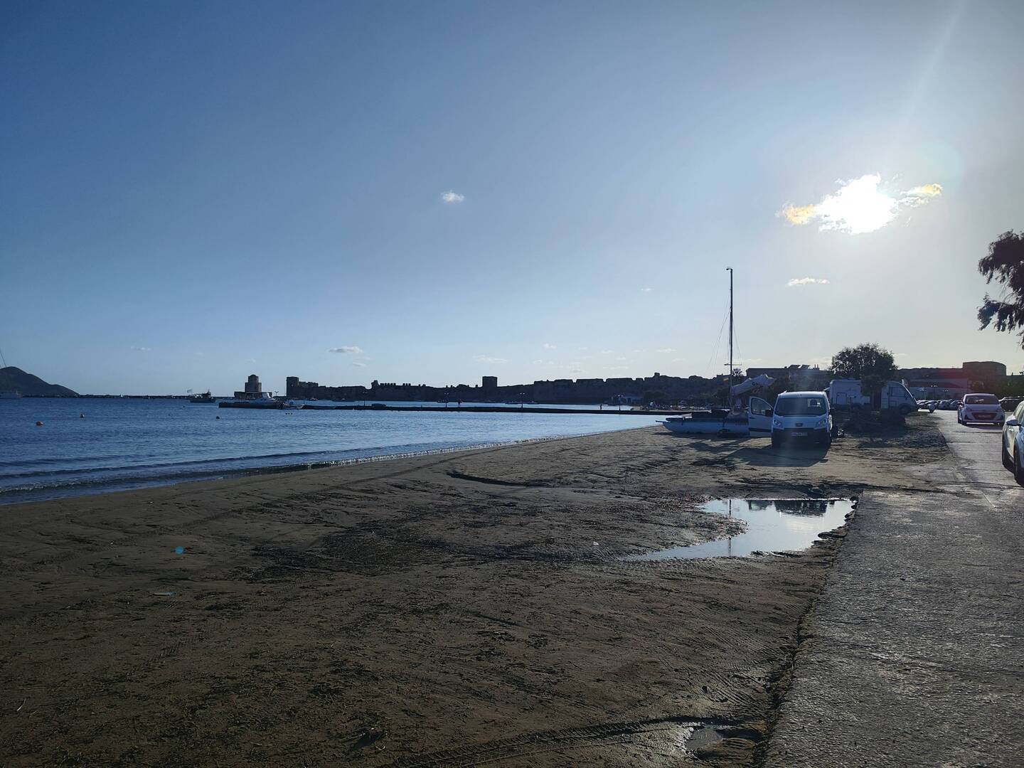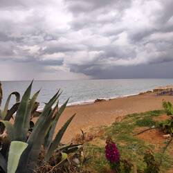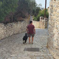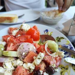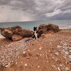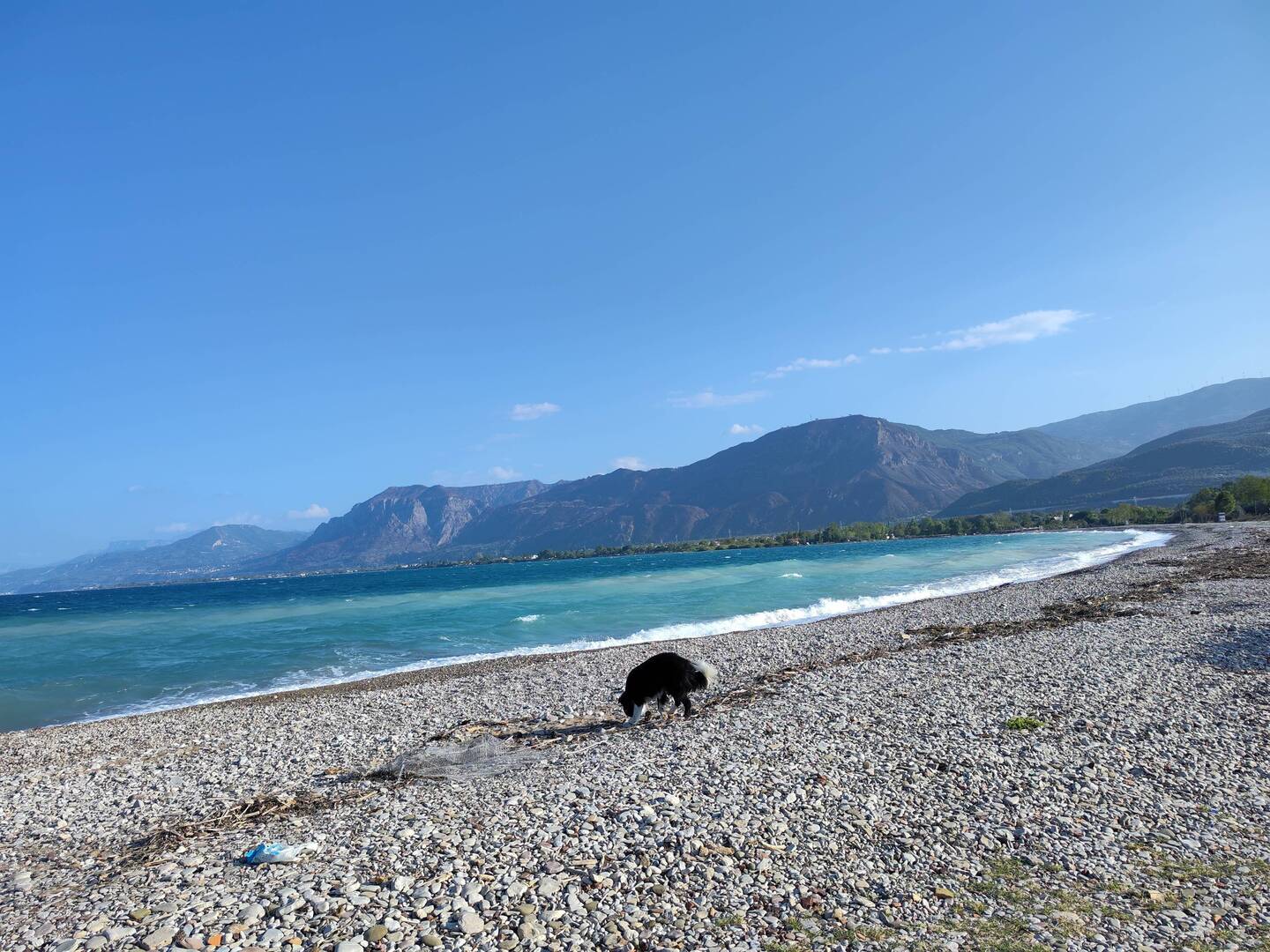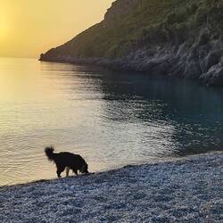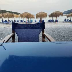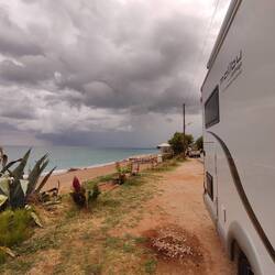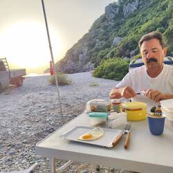 Einfach mal nix getan, Schlaf nachgeholt, Strandspaziergang mit Joko und gute griechische Hausmannskost am Abend bez. €36 Euro und 5 Euro für Strom Übernachtung war im Essen inbegriffen.