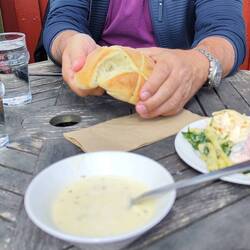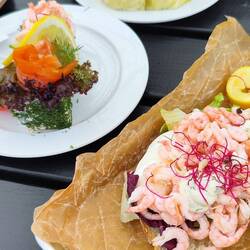 Von unserem Stellplatz war es der direkte Weg zum Meer und somit suchten wir uns dieses Fischerdorf zur Besichtigung und für ein Mittagessen aus, bevor wir uns Richtung Smögen aufmachten. Hier bekamen wir einen ersten Blick auf die Schären und machten einen interessanten Spaziergang durch den Skulpturengarten. Im Hafenrestaurant gab es wieder ein Menü für mich um 11 Euro und Walter durfte trotzdem alle Menü Vorteile nutzen obwohl er eine Pizza von der Karte bestellte. Salat vom Buffet, Getränke und Kaffee frei, soviel man will.Read more