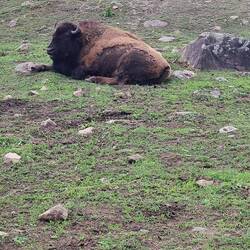 Leider sind wir zu spät für die Bimmelzugfahrt gekommen. Aber man durfte auch mit dem Womo durch den Park fahren. Zu sehen waren Büffel und Elche, aber die Tiere waren nicht sonderlich an uns interessiert, schauten uns gelangweilt an, höchstwahrscheinlich nervt es schon, wenn da Immer wieder Autos oder der Zug vorbei fährt.