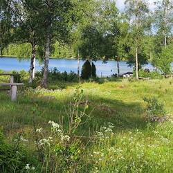 Nachdem wir in Vimmerby entschieden haben, das es uns zuviel Zeit und Geld kostet den Freizeitpark von Astrid Lindgren anzuschauen, machten wir uns auf den Weg Richtung Mariannelund um das Filmdorf Småland anzuschauen, dort würden wir die Entstehung der Filme Pippi Lanstrumpf, Michel aus Lönneberga, Ronja die Räubertochter und die Kinder von Bühlarbu sehen, Eintritt für Hunde verboten, der Parkplatz in der prallen Sonne. Wir hatten heute 26 Grad. Aber gleich daneben im Wald am See der schöne Campingplatz Spilhammars. Da bleiben wir bis morgen Mittag, so kann Kelani im klimatisierten Womo warten.