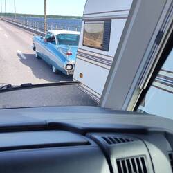 Und irgendwo auf Öland muss ein American Car treffen sein oder so ähnlich wir sahen auf der Brücke nach Öland ungewöhnliche Gespanne.