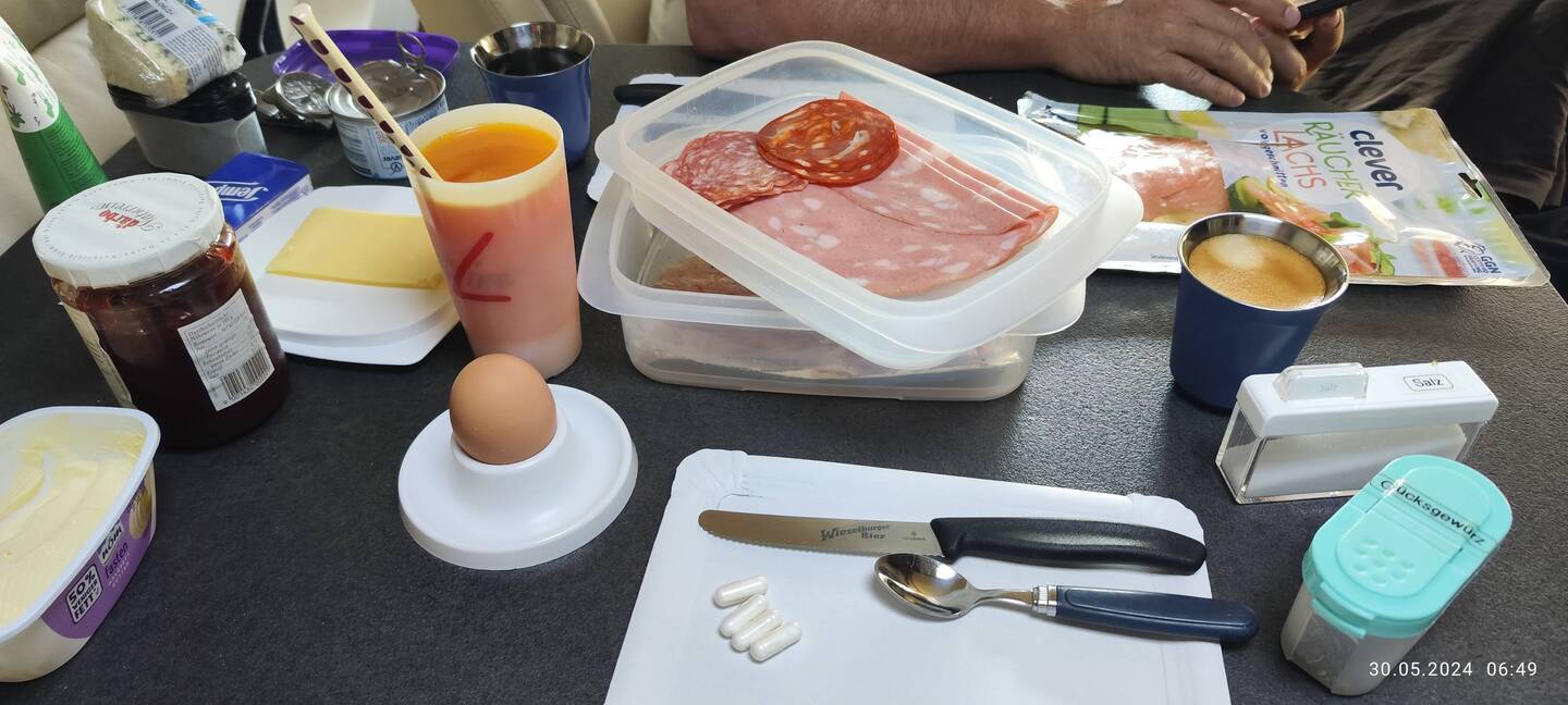 Walter schläft schon wenn es noch hell ist 😊, das ist mir aufgefallen, dafür Tagwache um 6 Uhr 🤭, was auch nicht stört. Somit haben wir genug Zeit für ein ausgiebiges Frühstück, Spaziergang mit Kelani und Tagesplanung.