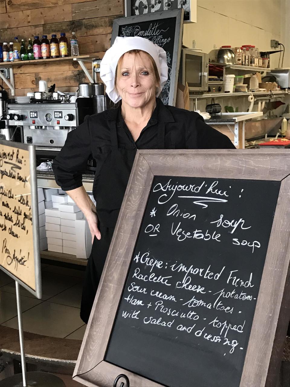 This French bakery is right next door to the lube shop. And the car will be a half hour. And we're hungry (having done laundry including sheets which are big and require WRANGLING.)