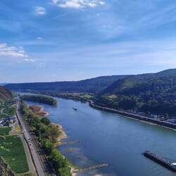 Morgens sah man überhaupt nichts mehr von Bad Hönningen. Dichter Nebel versperrte die Sicht. Dieser verschwand aber nach einiger Zeit und es wurde wieder sehr warm. Da habe ich lieber Regen, wie an Tag 111. Manchmal genieße ich es irgendwie richtig durch den Regen zu gehen. Als erstes ging es für mich an Tag 113 nach Bad Hönningen wo ich den gleichen Auftrag hatte wie den Tag zuvor. Zum Campingplatz, duschen und Keidung waschen. Diesmal hat es auch geklappt. Der Platz lag direkt am Rhein und existierte auch noch. Ich nahm eine ausgiebige Dusche und machte meine Klamotten sauber. In der Zeit konnte meine Powerbank ein bisschen laden. Ich wusste garnicht dass hier so viel Weinanbau betrieben wird. Immer wieder geht man an vielen Reben vorbei. Irgendwann kam ein Informations Schild für Wanderer "Achtung Rheinsteig-Kletterpassage, alpine Streckenführung. Trittsicherheit und Schwindelfreiheit erforderlich". Es gab auch eine alternative leichtere Strecke. Ich nahm natürlich die Kletterpassage und war gespannt. Aber es war nichts besonderes. Klettern musste man nicht. Es gab ein Seil zum festhalten, was man aber nicht unbedingt braucht. Nach den Strecken in Norwegen, war das für mich ein ganz normaler Weg 😅 Die Strecke ist bis jetzt insgesamt ganz in Ordnung und man hat oft einen tollen Ausblick. Manchmal gefällt mir die Nähe zu der Bundesstraße nicht, die direkt am Rhein verläuft. Da hatte ich schon deutlich ruhigere Wege in Deutschland. Aber so schlimm ist es auch nicht. Abends kam ich wieder zu einer Schutzhütte wo ich meine Hängematte für eine Rast aufbaute.