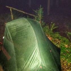 Etwa um acht Uhr wird es dunkel im Wald, trotzdem gehe ich weiter und mache schonmal die Kopflampe bereit.
