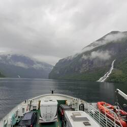 Heute leider schlechtes Wetter, aber trotzdem ist die Fährfahrt durch das Fjord ein Erlebnis.