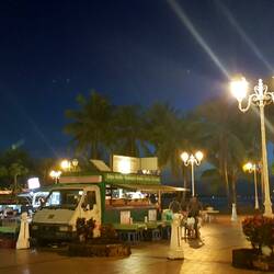 Da wir erst nach 17 Uhr zurück in der Stadt sind und die Geschäfte schon alle geschlossen haben 🙈, essen wir heute Abend bei einem der für Französisch-Polynesien berühmten Roulottes (Food Trucks) auf dem Place Vaiete. Wir müssen sagen, es war mehr, günstiger und leckerer als in dem Restaurant gestern 🙂.