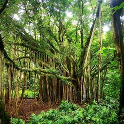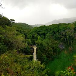 Zum ersten Mal nehmen wir heute einen Hitchhiker mit, dann wird die nun bereits bekannte Straße vielleicht etwas abwechslungsreicher. Von ihm erfahren wir, dass die Road to Hana zu den Top 10 der gefährlichsten Straßen der USA gehört. Zum Glück fahren wir sie gleich zweimal. 😉 Um etwas Entwarnung zu geben: Eine (zugegebenermaßen nachträgliche) Recherche hat das schlechte Image nicht bestätigen können, obwohl die Straße wohl gegen Ende des letzten Jahrhunderts (😄) noch deutlich unwegsamer und gefährlicher war.