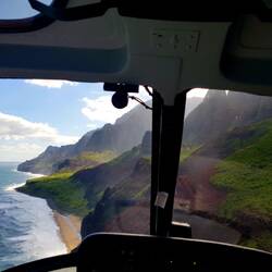 Nach der ersten Nacht im "Camper", in der wir leider nicht sehr viel Schlaf gekriegt haben, geht es zurück nach Lihu'e zu einem Helicopterrundflug. Da es für uns beide das erste mal in einem Helicopter ist, sind wir etwas aufgeregt. Und es war sein Geld allemal wert. Wir sind über die Jurassic Falls geflogen, durch den Waimea Canyon (der Grand Canyon des Pazifiks), vorbei an unzählig vielen Wasserfällen, in einige Valleys hinein und die Na Pali Coast hinunter. Die Aussichten waren einfach nur atemberaubend und vor allem die Jurassic Falls haben uns besonders überwältigt.