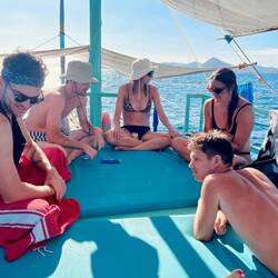 Der erste Halt war eine kleine Insel mit Riff und traumhaften Sandstrand. Nach zweistündiger Fahrt, aßen wir beim nächsten Stop ein köstliches Mittagessen an Bord und spielten mit den Kids auf der nächsten Insel. Mit Styropor-Deckeln surften sie in den Wellen und hatten eine Menge Spaß. Als es dann noch ein kaltes Bier gab, waren einfach alle glücklich.