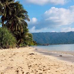 Weiter liefen wir am Strand entlang, durchquerten einen kleinen Dschungelabschnitt und kamen schließlich in die Nachbarbucht, den Coconut Beach. Eine Palme stand neben der anderen - es war herrlich. Wir suchten uns ein schattiges Plätzchen, beobachteten das Meer und sprachen über die neue Situation. David war nicht in der Lage seinen Backpack zu tragen. Ein neuer Plan musste also her. Trotzdem wussten wir beide, dass die kommende Zeit richtig schön werden wird. Überhaupt waren David und ich tiefenentspannt. Wir hatten schon so viel erlebt und gesehen in den letzten Monaten — unsere Adventure-Akkus waren aufgeladen, die Seele in Balance und die Herzen voller Liebe. Vielleicht blickten wir deshalb so gelassen auf die neue Situation. Alles was jetzt kam war Zugabe — noch mehr Vanillesahne auf der Mango-Kokostorte.