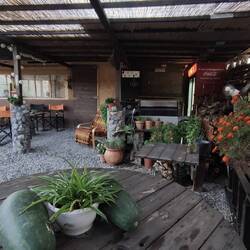 Manolis has built a little gem between two very small villages, each with no more than 10-15 people living in it. It's called Sunny Hill Café and reminds me a lot of our fire kitchen.