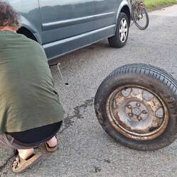 Conil de la Frontera 2025TravelerShow tripAdd to bucket listRemove from bucket listShareDay 27Thursday, October 30, 2025 at 5:25 PM ☁️ 20 °C Altitude: 81 m SpainConil de la Frontera36.34622, -6.06344436°20’46” N 6°3’48” WFlat tire October 30 in Spain ⋅ ☁️ 20 °C Ok, we had some fun 🤪.A spare wheel was under the car and it had enough pressure, but the nut was rusted solid.Luckily we had bikes with us and the workshop was only 8 minutes away by bike to borrow a proper pair of pliers and a good wrench. Now the spare wheel is on and only the tire has to be repaired tomorrow.Read moreTraveler😳3wReply0 likes Show trip