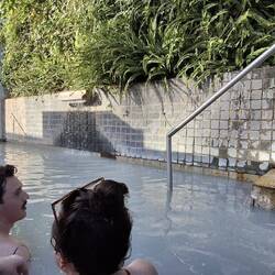 They have warm showers, restrooms and changing rooms and when I came in, there were only 5 locals. The 2 bassins have different temperature, one had 38,7° the other 40,8° - this changes but the lady tells you the temperature when you enter.