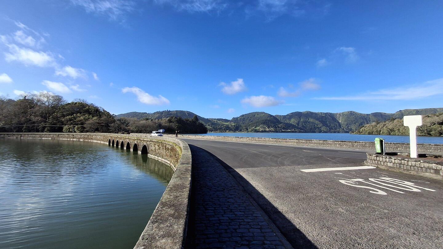 I've never shown you the bridge in Sete Cidades that goes between the twin lakes. Now's the time.