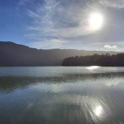 The lake sits at roughly 800 meters above sea level, surrounded by dense stands of Japanese cedar, cryptomeria, and native Azorean vegetation. Because of its elevation, the weather can change quickly, often wrapping the lake in a soft, mysterious fog.