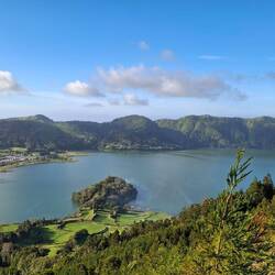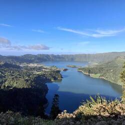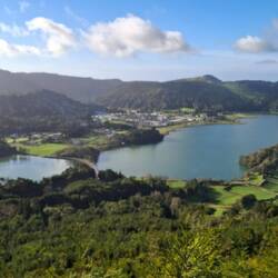 Perched high above the Sete Cidades volcanic complex, this scenic overlook offers a perfect panorama over four crater lakes.