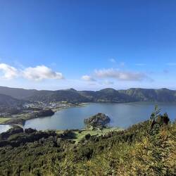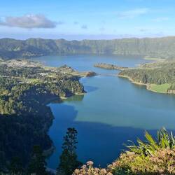 You can see the twin lakes of Lagoa Azul and Lagoa Verde, whose contrasting blue and green waters sit inside the vast crater of the ancient Sete Cidades Caldera as well as Lagoa de Santigo and the smallest Lagoa Rasa.