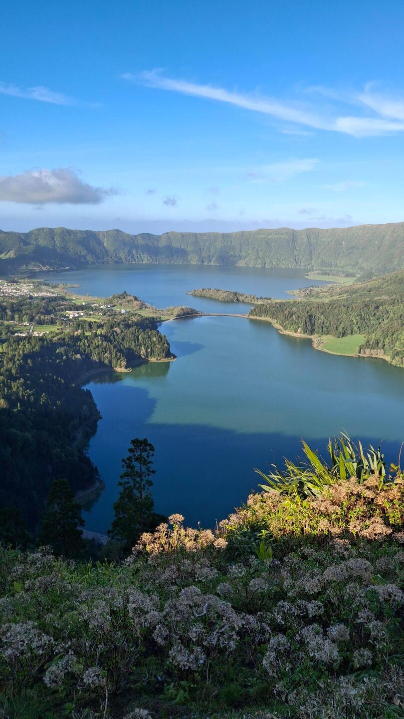 I drove up to the craters and over the bridge between the twin lakes to Miradouro da Grota do Inferno. This is one of the most breathtaking viewpoints on São Miguel.