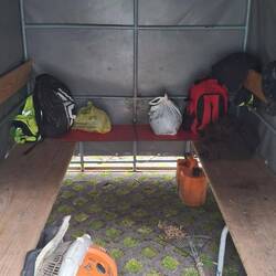 Once everyone has been picked up, they drive to their mowing area. Then the small green tent is unloaded, placed somewhere on the side of the road, and the workers work on the road or alternatively sit inside the tent. Every day you’ll find some of these green tents all over the island, if you look for them.