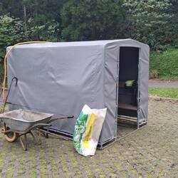 Why do all these workers have such a small green tent? It's because of the rapidly changing weather here. Within half an hour, it rained three times, and three times the sun shone brightly. And the solution is this tent. Mow, quickly into the tent, mow, quickly into the tent, mow, quickly into the tent.