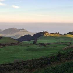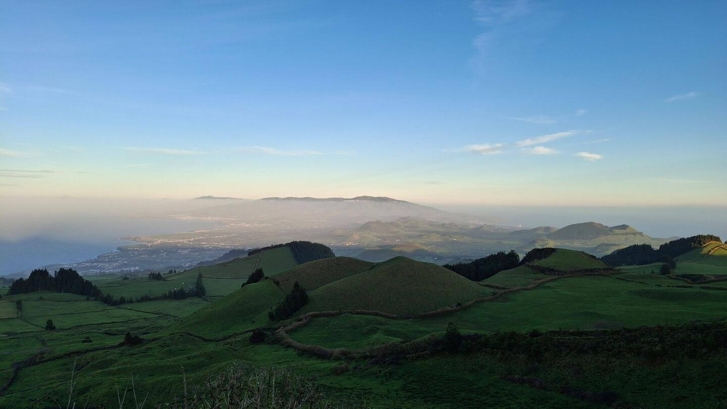 At this point, which we are looking at here, São Miguel is less than 8 km wide, and this is where most of the development is located. On the left side you can see Ribeira Grande and on the right side you can see Ponta Delgada. The best view on this narrowest part of the island is from the Miradouro do Pico do Carvão.