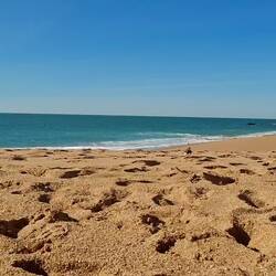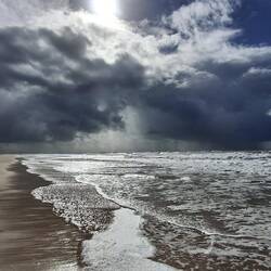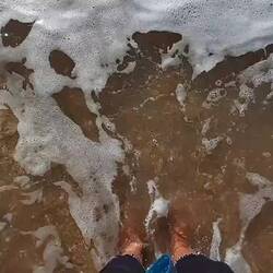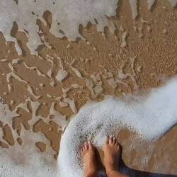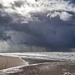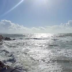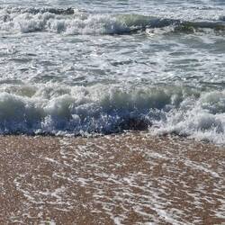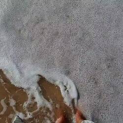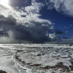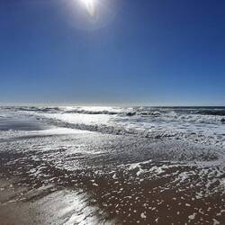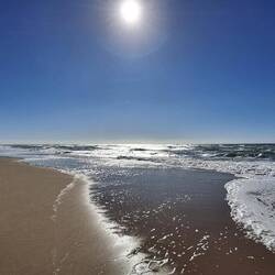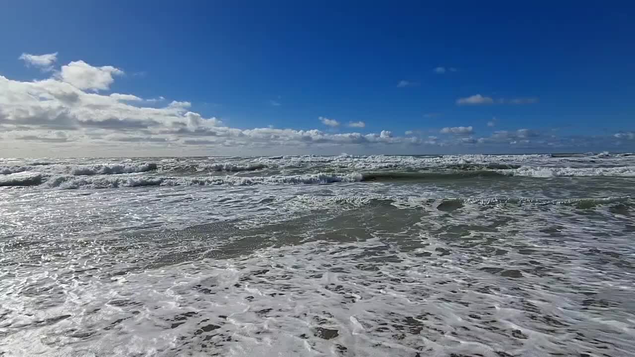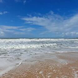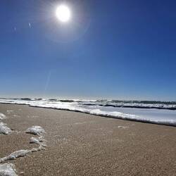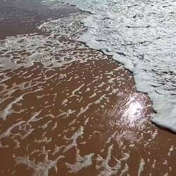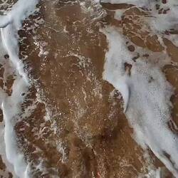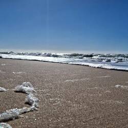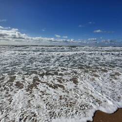 Today is still windy and this creates a large amount of sea foam, which is carried by the wind and tumbles across the beach, and with the bubbles wandering along the wet sand like crabs.