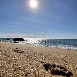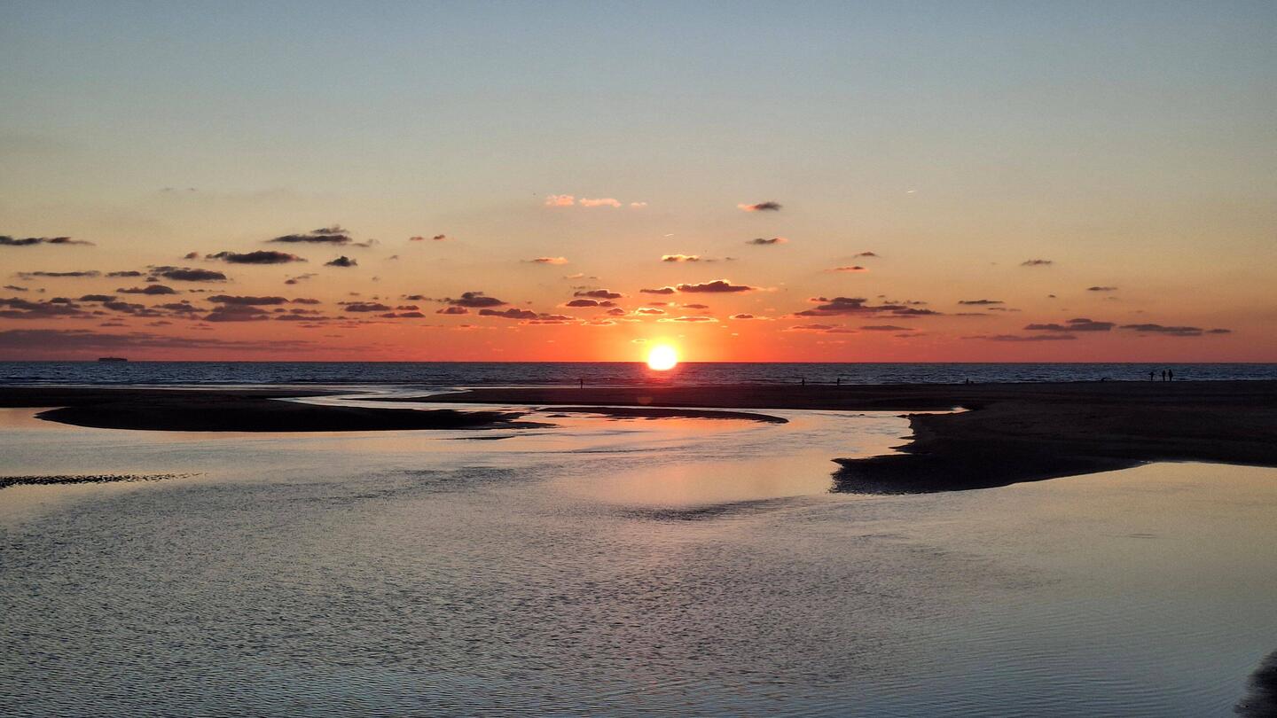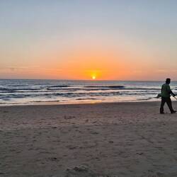 In October, when there are more people on the beach during the day, this is a fairly common sight at sunset.