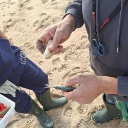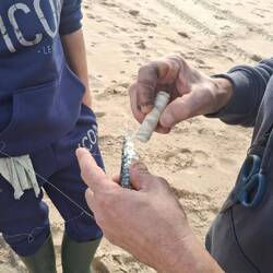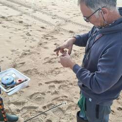The father showed and explained to me how he "installs" the hook in the half-sardine and he secured it many times with strong thread so that theRead more
