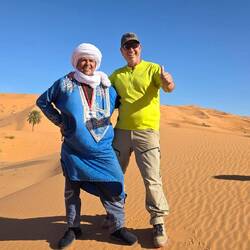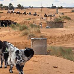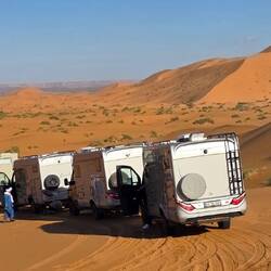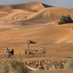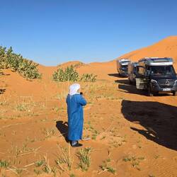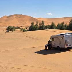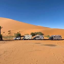 TravelerIn diesem schönen Camp haben wir eine Woche, u. a. Sylvester verbracht. Am grossen Palmblätter beheizten Lagerfeuer und der obligatorischen Musik etwas ins >Neue Jahr< hinüber-gefroren ... Der geführten auffällig lauten 7er-WoMo-Tour dabei erfolgreich aus dem Weg gegangen und privat mit den ansonsten touristisch kameltreibenden >locals< feierlich unterhalten. Dazu gab es aus dem Erdloch-Ofen gebratenes Lamm ...