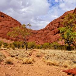The end of the Great Central Road is just 5 km away from the Kata Tjuta Rock. We arrived very early and so we had enough time to explore this one directly before we continued to the Ayers Rock ResortBaca lagi
